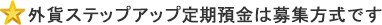 ステップアップ定期預金・外貨ステップアップ定期預金は、特約付きの定期預金です。満期を繰上げる(預入期間を短縮する)権利を当社に付与していただくことで、比較的高めの金利を設定しています。現在、ステップアップ定期預金(6年・10年)と、外貨ステップアップ定期預金(2年・3年)を取扱っています。